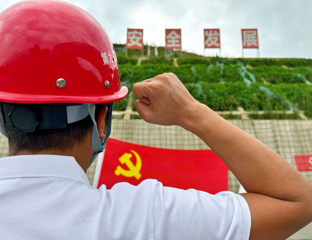 7月1日,贵州公路集团第九工程有限公司广大党员与党旗合影,祝福亲爱的党生日快乐!祝福我们伟大的祖国繁荣富强!