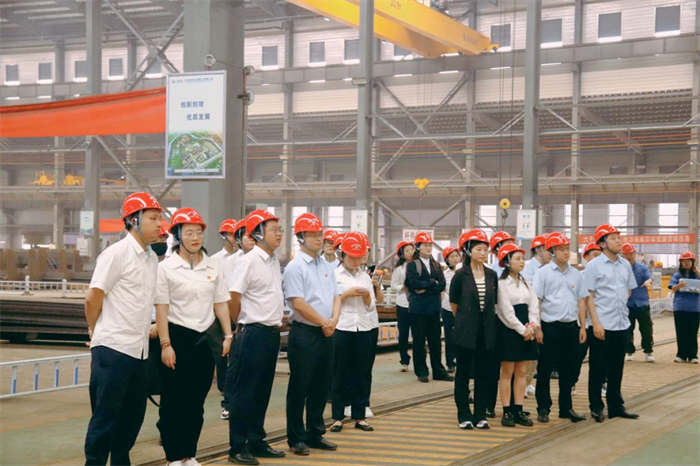 会前,40余名青年职工先后参观了交通产业园厂房、高速公路配套装备和钢结构产品生产加工现场,走进设备物资公司龙尚成劳模创新工作室,实地了解产业园厂房建设、设备配置、产品种类等情况。