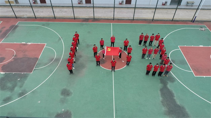 第六工程公司广西贺州2标项目党支部党员与党旗合影