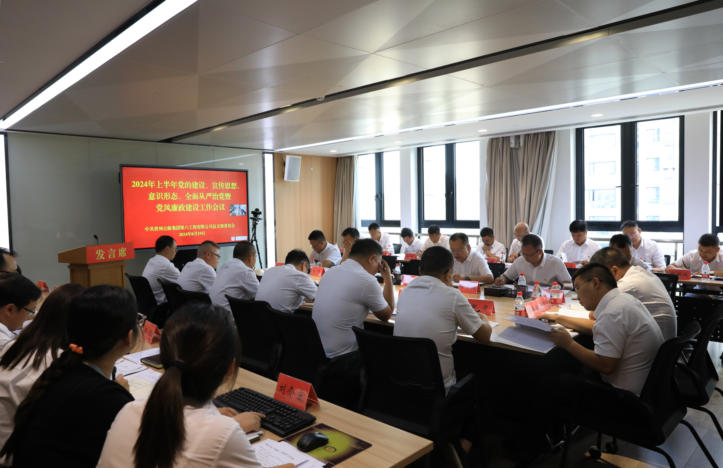 8月19日,贵州公路集团第六工程公司召开2024年上半年党的建设、宣传思想、意识形态、全面从严治党暨党风廉政建设会议。公司在家领导班子成员、资深专员、各党支部书记、项目经理、纪检委员、本部各部门负责人、党务工作者参加会议。
