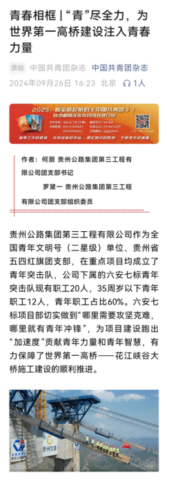 当最后一缕阳光掠过党建文化长廊的党徽,花江峡谷大桥的钢索在暮色中泛着红光。从联建育人的“小平台”到攻坚创新的“大战场”,贵州公路集团以党建为笔、以实干为墨,在黔贵大地上写下“红色引擎擎高桥”的时代答卷。这座云端奇迹,不仅是“世界第一”的纪录,更是党建引领下,国企担当与工匠精神的永恒见证。