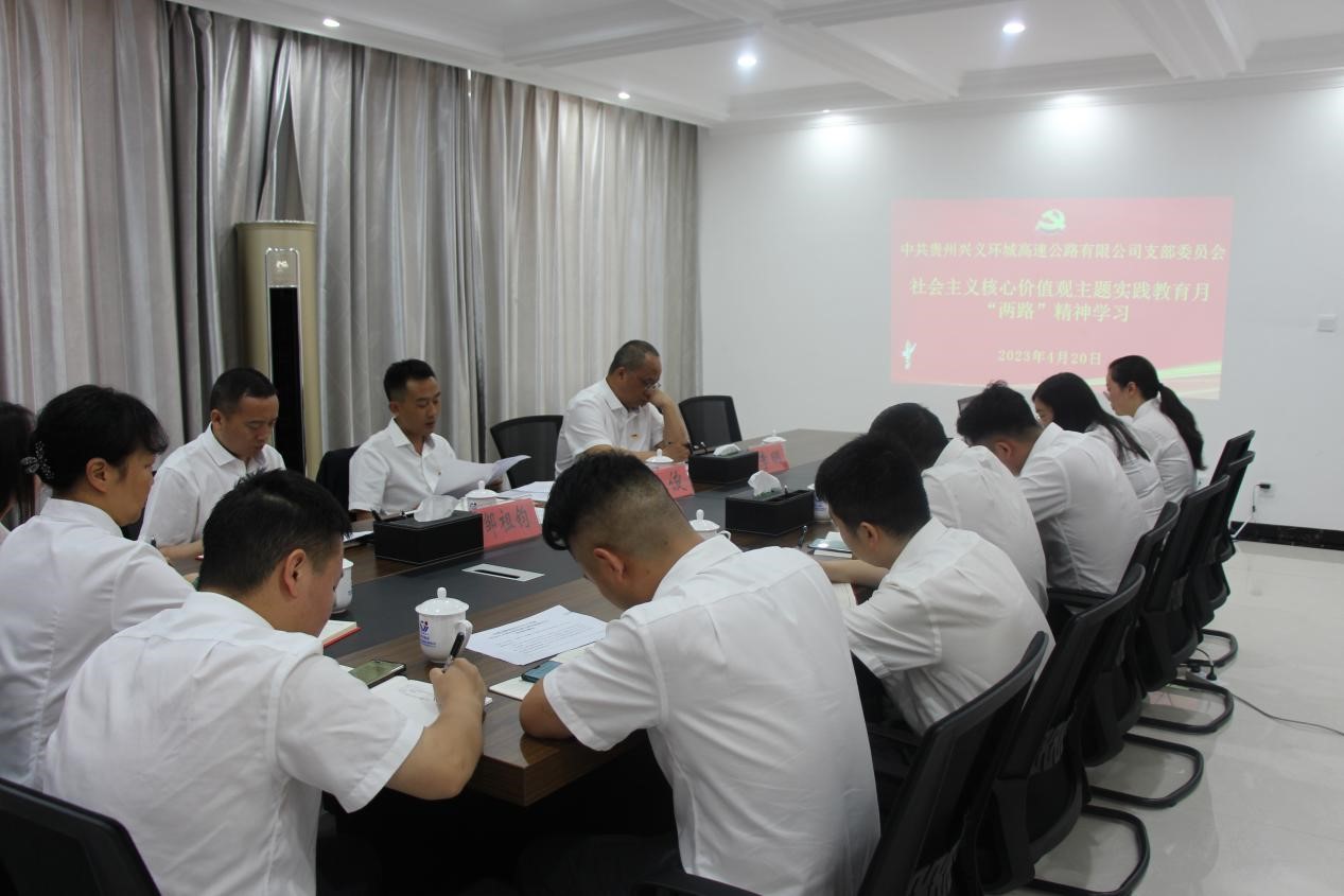 公司党支部组织专题学习“两路”精神,各党员结合自身岗位,积极开展研讨。会议深入学习了“两路”精神内涵,结合贵州公路集团红色基因的来源、发展历程切实感悟“两路”精神力量,进一步加深各党员对集团公司65年风雨历程的了解,并要求全体党员干部大力弘扬“两路”精神,充分发挥党员先锋模范作用,努力攻克兴义环高年度重大任务和建立贵州喀斯特石漠化地区高速公路运营管理标准化体系,推动兴义环高运营管理取得新的更大成效。