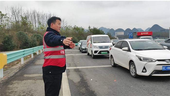 兴义环高全体职工迅速响应,应急救援队迅速赶赴现场,采取联合调度指挥、前中后管控、借用应急车道通行和加大信息发布力度等措施开展缓堵保畅工作。兴义环高公司立即召回休班人员,优化收费车道布局,并增设小型客车免费专用车道,全力提升车辆通行效率。在做好现场管控的同时,及时将现场情况上报与地方交警部门和应急指挥中心,由地方交警现场调整红绿灯时间,及时缓解了交通拥堵问题。