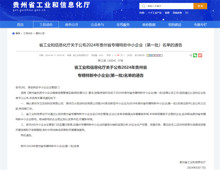 中铁贵州公路建工公司:被认定为“2024年贵州省专精特新中小企业”。