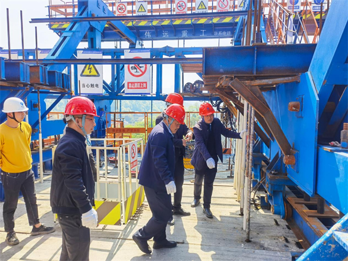 班子成员到宜来2标渔洋河大桥现场指导