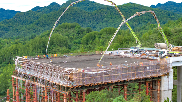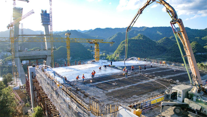 百花湖大桥边跨混凝土主梁第五浇筑段浇筑现场