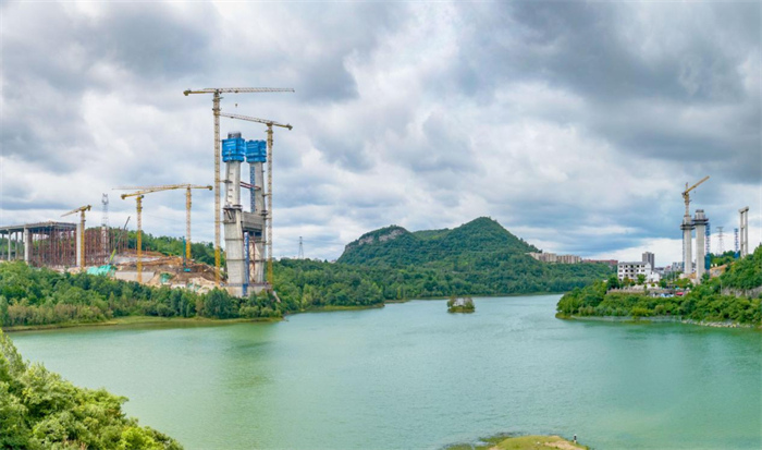 百花湖大桥主塔毗邻百花湖水库,桩基岩溶发育为“串珠式”溶洞,溶洞之间存在与百花湖水库贯通情况,项目施工难度大、环保要求高,项目采用冲击钻成孔工艺,顺利完成主塔桩基施工,为大桥承台施工、下横梁浇筑及主塔的稳步攀升打下坚实基础。