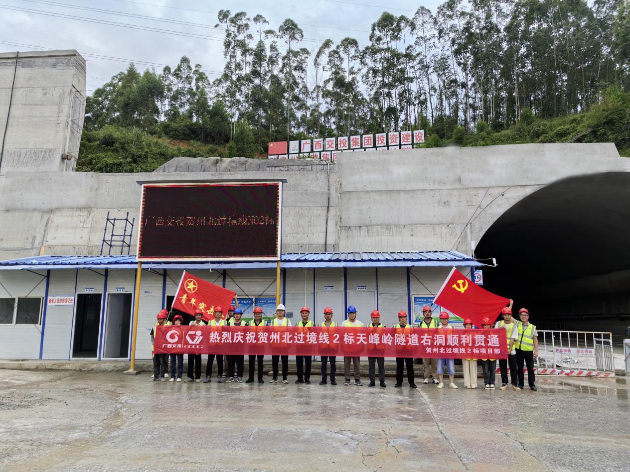 近日,由贵州公路集团第六工程有限公司承建的广西贺州北过境线2标天峰岭隧道右幅顺利实现贯通。