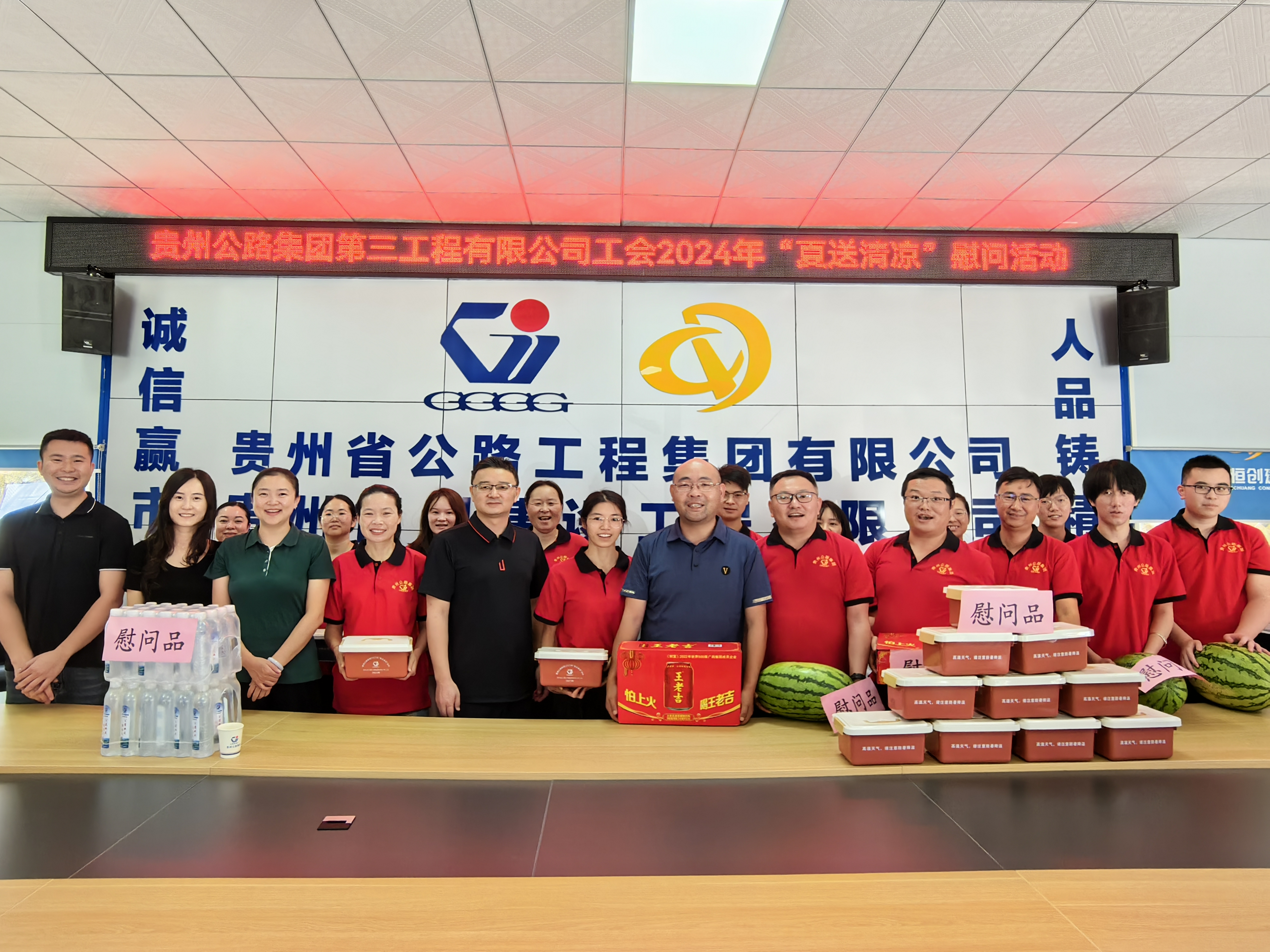 近日,贵州公路集团第三工程有限公司工会到贵安扩容3标、安盘7标开展2024年“夏送清凉”慰问活动,助力广大一线职工安全度夏、清凉度夏。