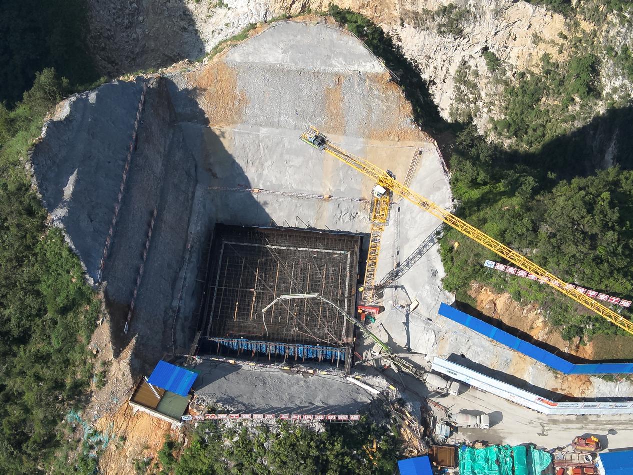 六车河大桥为安盘项目控制性工程,主桥为2×263.45米双联上承式钢管混凝土变截面桁架拱,桥面距离六车河峡谷垂直距离409米,大桥设有9号、10号、11号3个拱座,采用桩基础或扩大基础。
