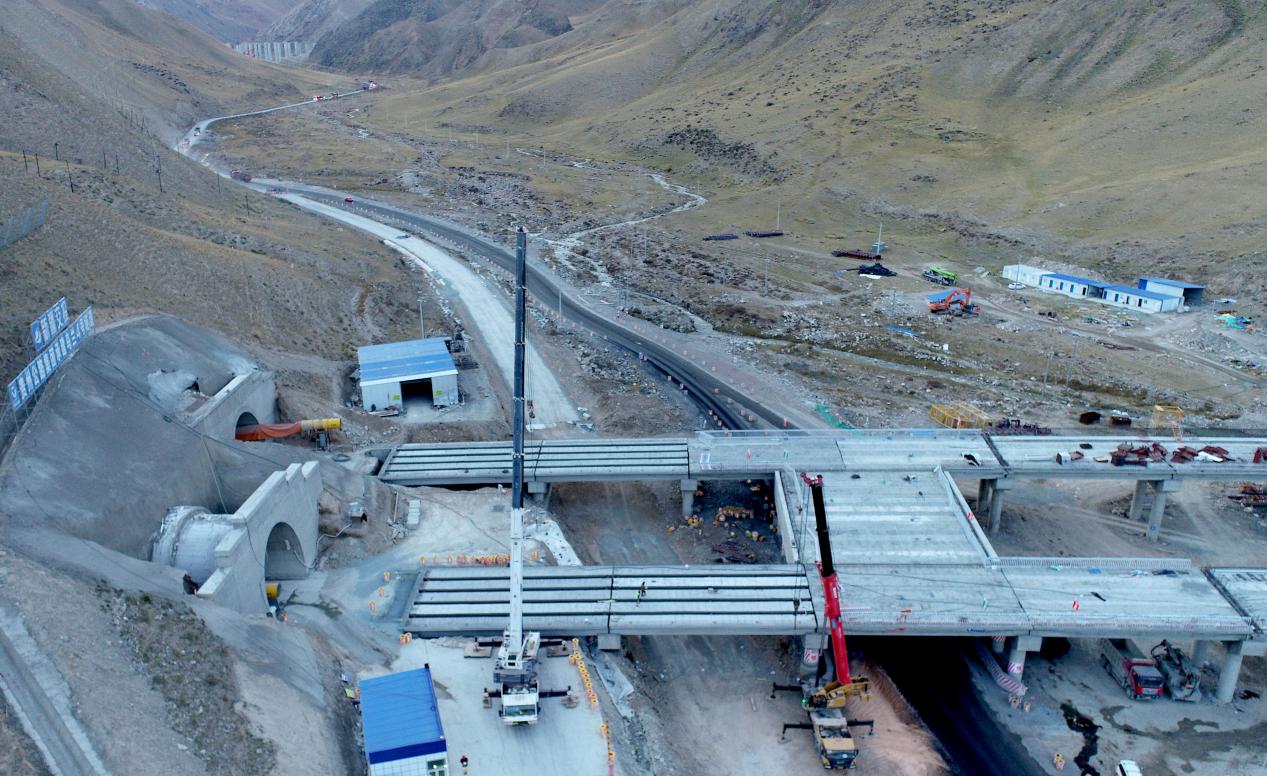 乌兰2号大桥为分离式桥梁,起点接乌兰3号隧道,终点接乌兰4号隧道,大桥左幅长347米、右幅长327米,共需架设20米T梁165片。