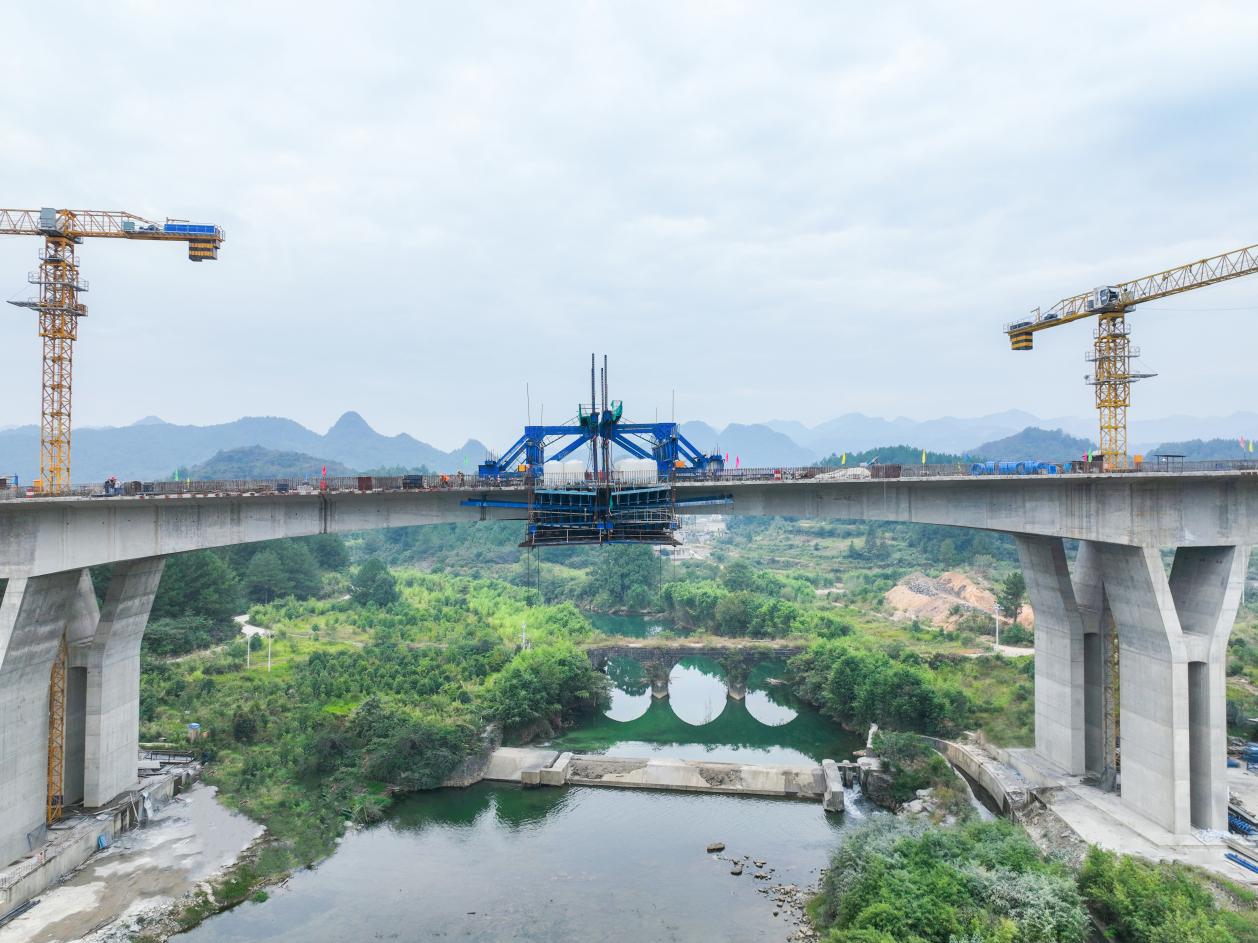 10月11日,随着最后一方混凝土浇筑完成,由贵州公路集团第九工程有限公司承建的贵平9标摆龙河大桥左幅顺利合龙。至此,摆龙河大桥双幅已全面贯通,项目建设取得重大进展。