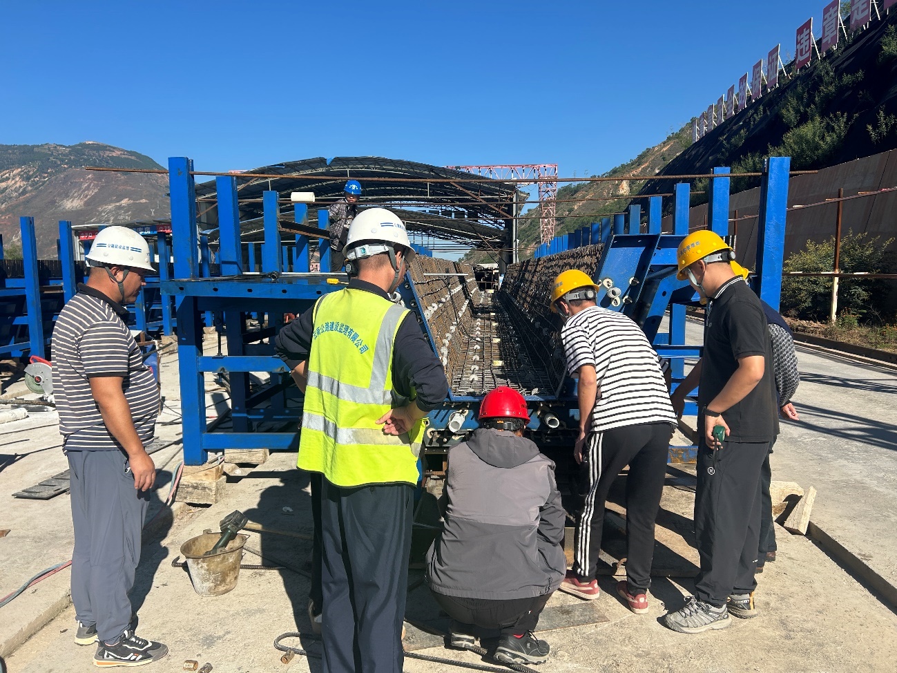 为确保首件预制箱梁顺利浇筑,项目部科学编制浇筑方案,严格安全技术交底,细化分解目标任务,对模板、钢筋、预应力管道的安装进行严格检查,现场技术、试验检测和监理人员全程监督,保证浇筑过程中的每道工序都科学规范、衔接有序。