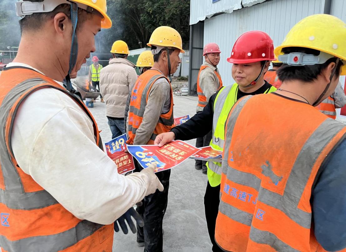 围绕 “全民消防、生命至上”主题,公司各项目在施工现场、办公区域、民工驻地等重点区域醒目位置悬挂消防标语横幅,张贴消防逃生技能及灭火设施使用方法宣传海报,并运用班前安全教育讲台、LED电子屏、安全教育移动宣传车等载体,组织建设人员观看消防安全警示教育片,在人员集中场所发放宣传册等,拓宽宣传覆盖面,增强大家消防安全意识,营造浓厚的消防宣传氛围。