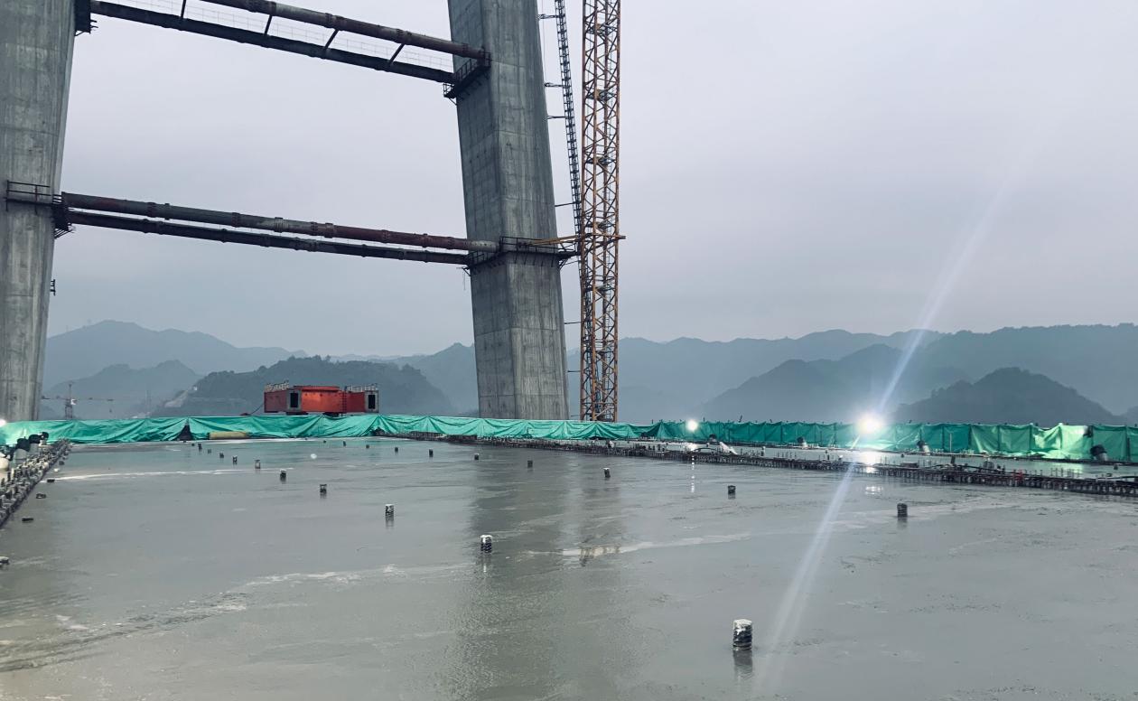 近日,经过43小时的连续作业,由贵州公路集团第三工程有限公司承建的贵安扩容3标百花湖大桥边跨混凝土主梁第二浇筑段顺利完成浇筑。