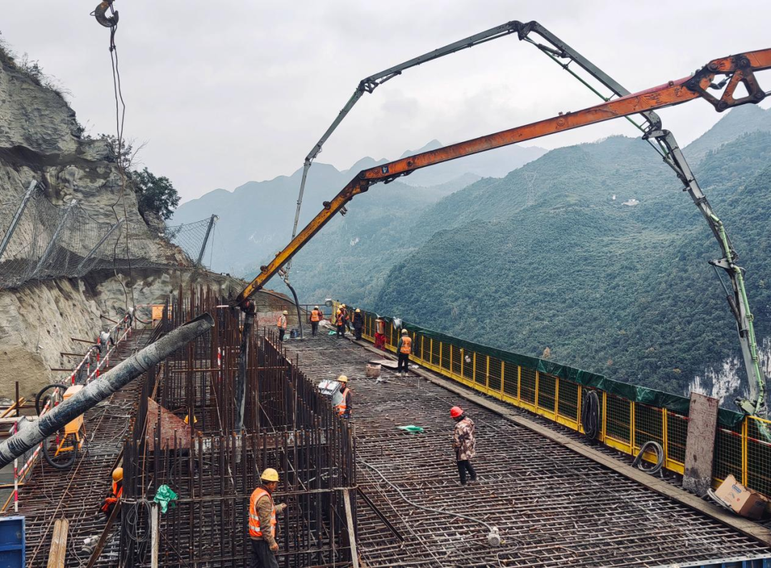 近日,经过连续90个小时的施工作业,由贵州公路集团第三工程有限公司承建的安盘7标六车河大桥顺利完成9号、11号拱座第二次大体积混凝土浇筑,大桥拱座施工取得新进展。