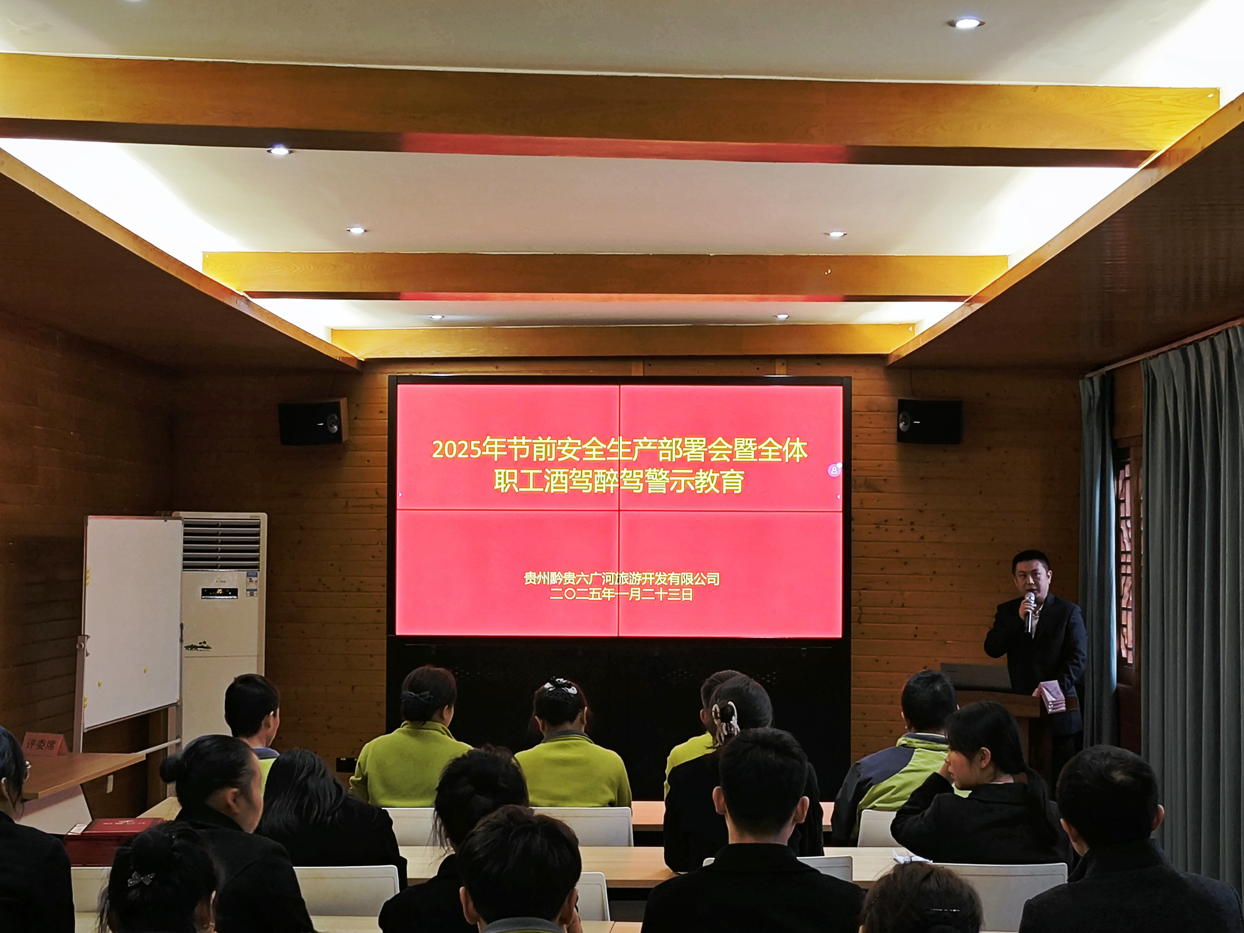 近日,六广旅游公司召开2025年节前安全生产部署会暨全体职工酒驾醉驾警示教育会议,以“奖优树范,安全相伴”为主题组织职工开展安全知识竞赛,知识竞赛活动内容紧密围绕景区实际安全需求,包含景区安全防火、游客安全、应急救援处置等多个关键领域。会议强调要确保春节期间安全生产,以身边相关典型案例进行警示教育,杜绝酒驾醉驾等违法违纪行为。