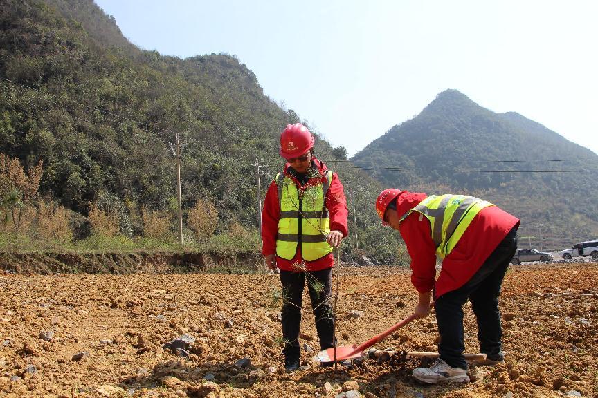 近日,云南会巧项目总承包部党支部组织开展“会巧高速添新绿 党员先锋树榜样”主题党日活动,在项目一工区干冲弃土场植树现场,项目部党员干部、团员青年争当回馈自然、美化大地的“植树能手”,撸起袖子弯下腰,俯下身子拿起锹,动作熟练地挥锹铲土、扶苗填坑、提水浇灌,让150棵红叶石楠顺利“安家落户”。