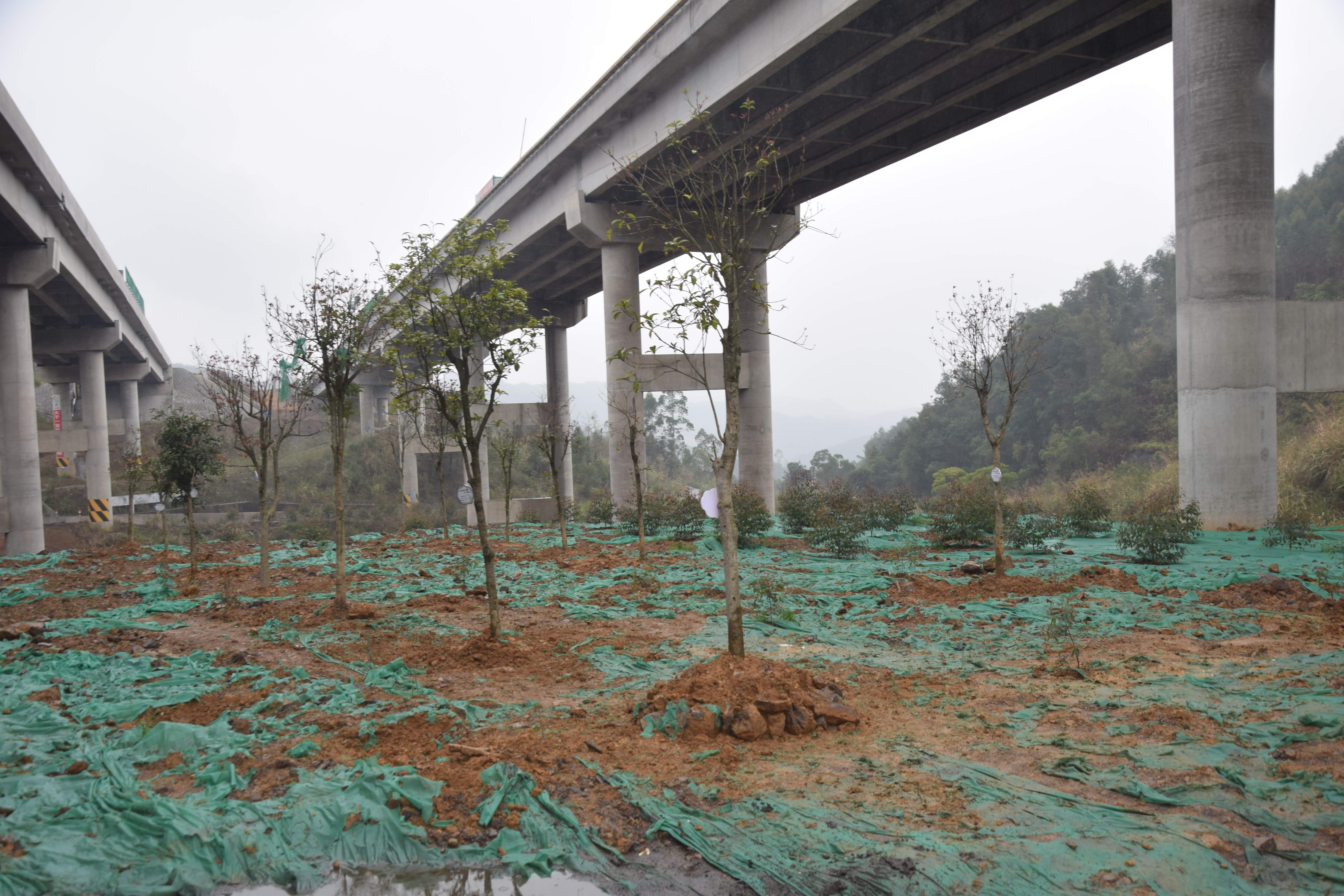 树苗在大沙坡大桥桥下盎然挺立