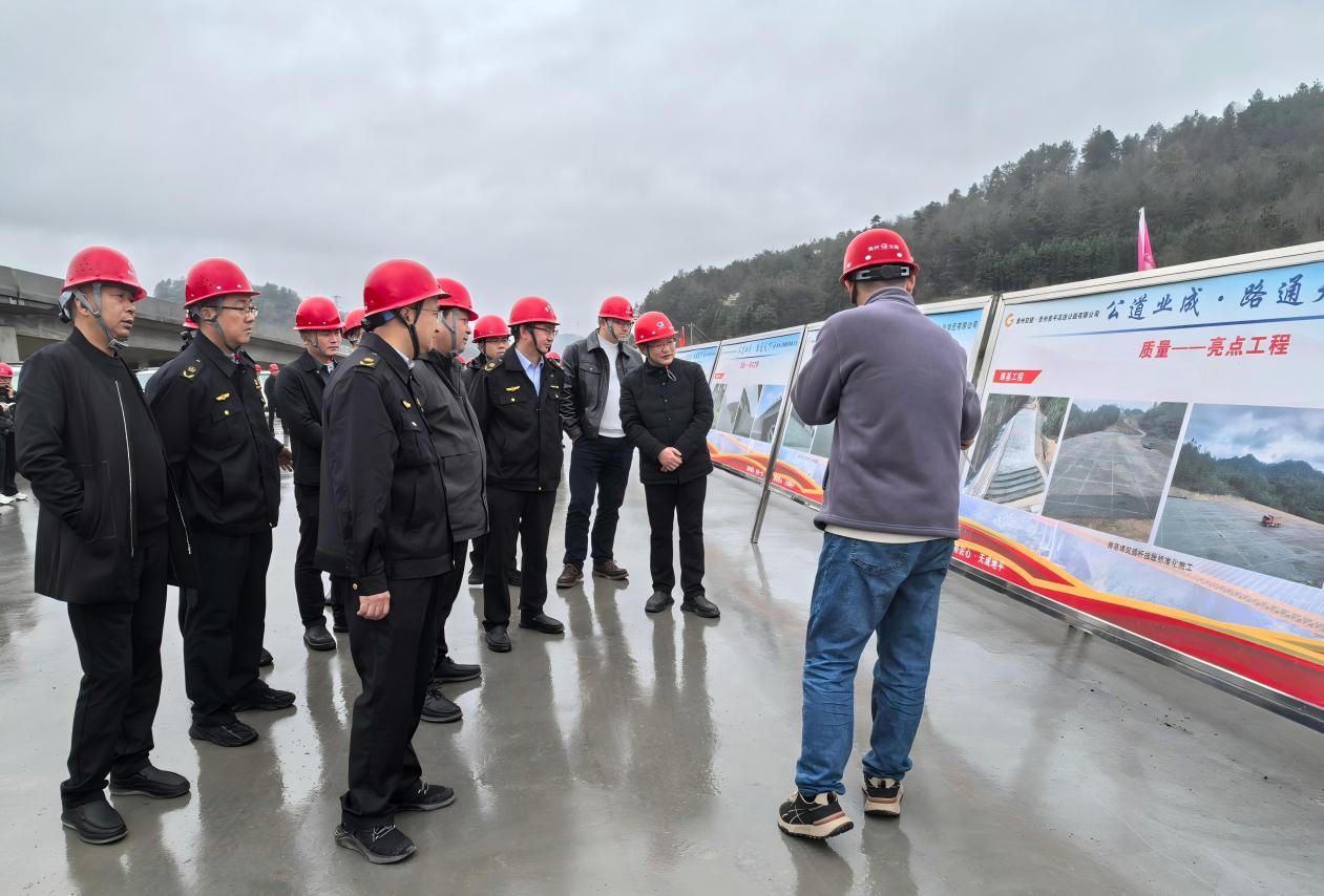 近日,贵州省交通建设工程质量监督执法支队带队到贵州公路集团第七工程公司承建的贵平16标平塘枢纽互通调研工程建设情况。