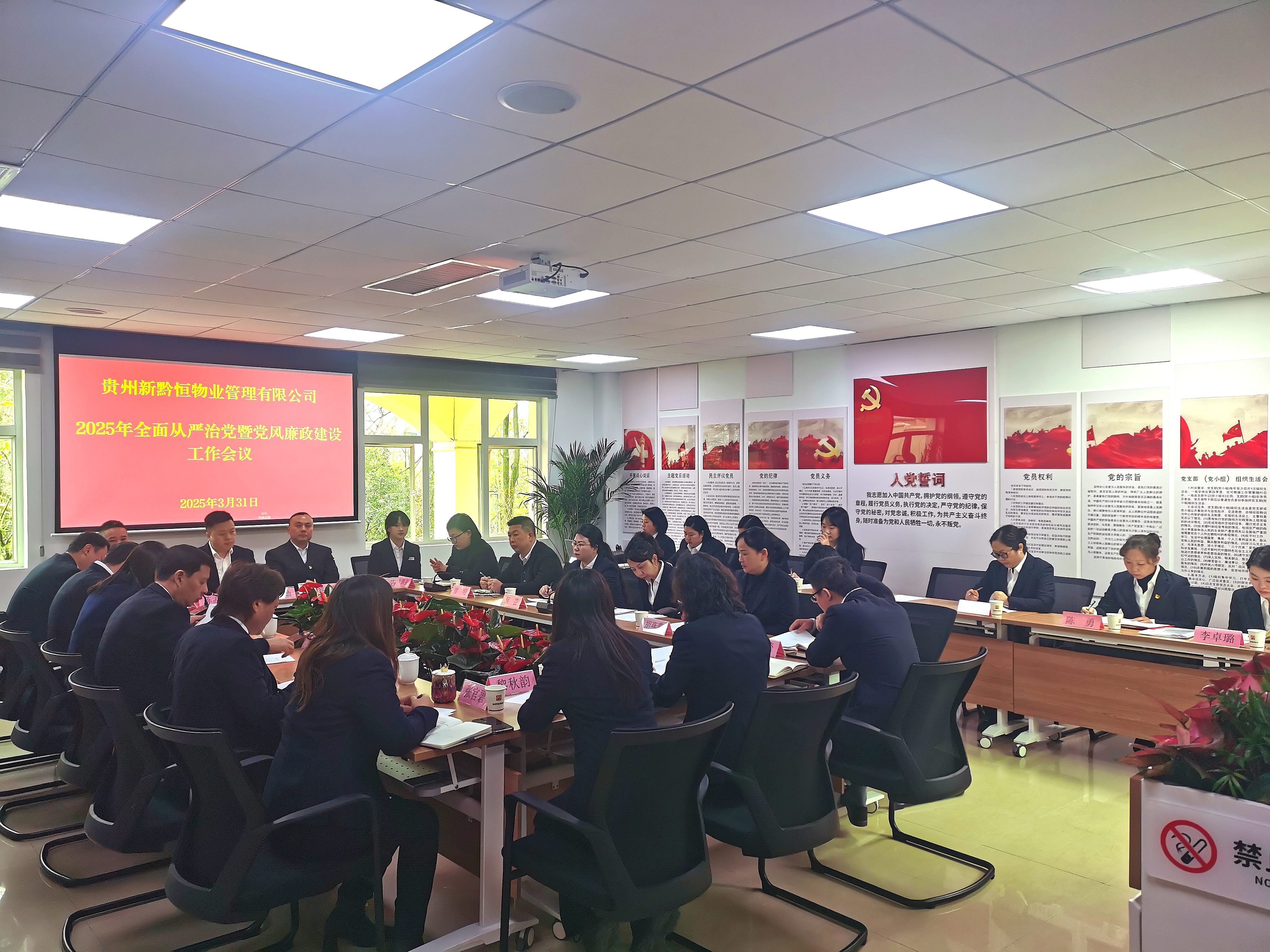 近日,新黔恒物业公司召开2025年全面从严治党暨党风廉政建设工作会议。传达学习相关会议精神,集中观看警示教育片,签订《落实“一岗双责”责任书》《廉洁从业承诺书》,对2025年公司全面从严治党工作作出安排部署并开展廉政集体约谈。