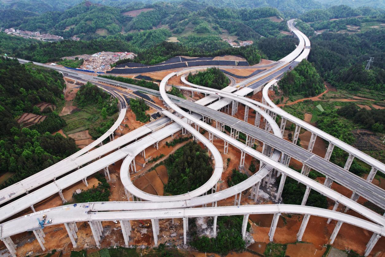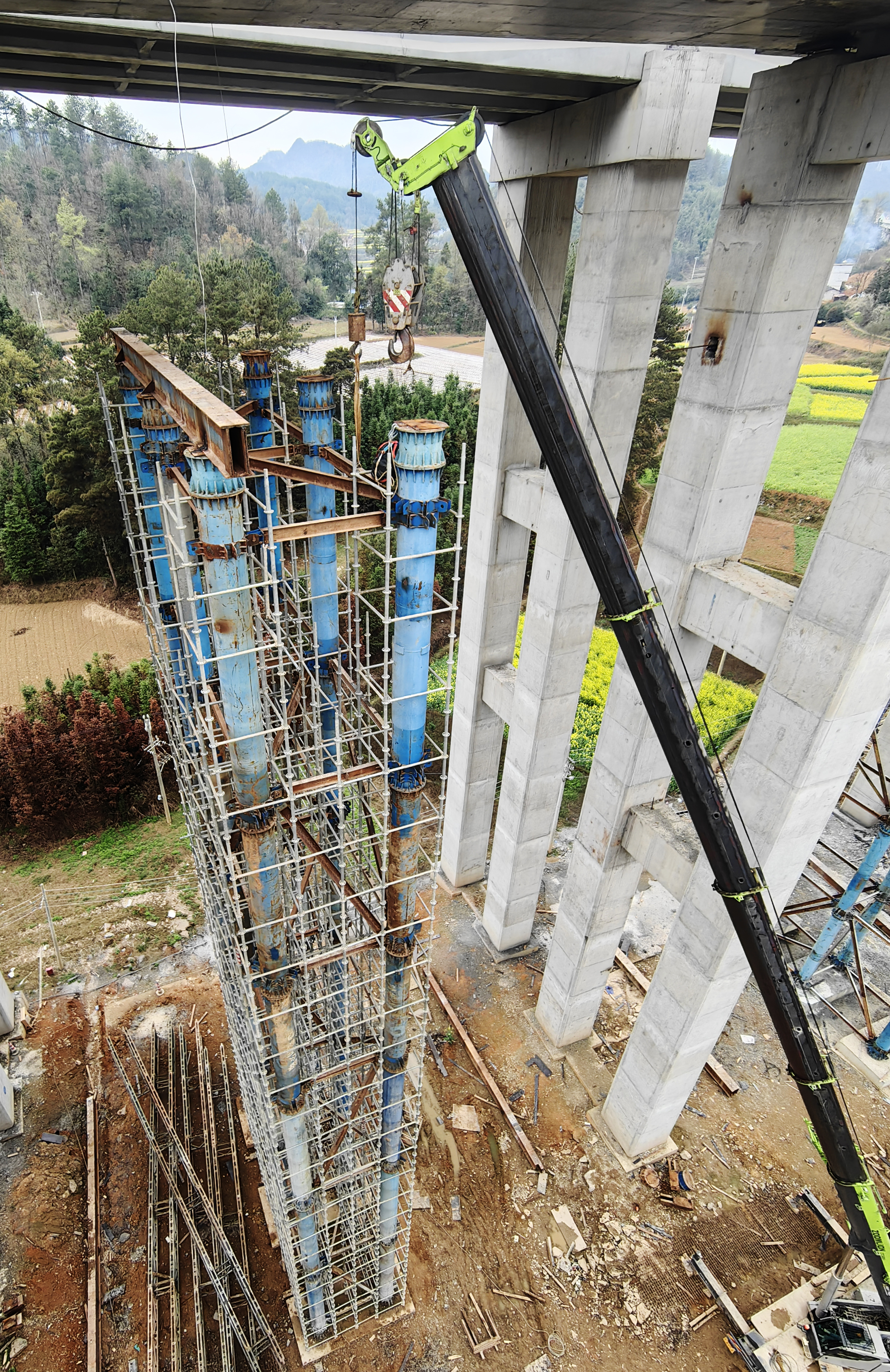 平塘枢纽互通位于平塘县平舟镇甘寨村,是贵平高速与平罗高速之间的交汇点。该枢纽互通共计10条匝道,全长4.99公里,现浇箱梁26联,墩柱210根,共需架设30米T梁180片。