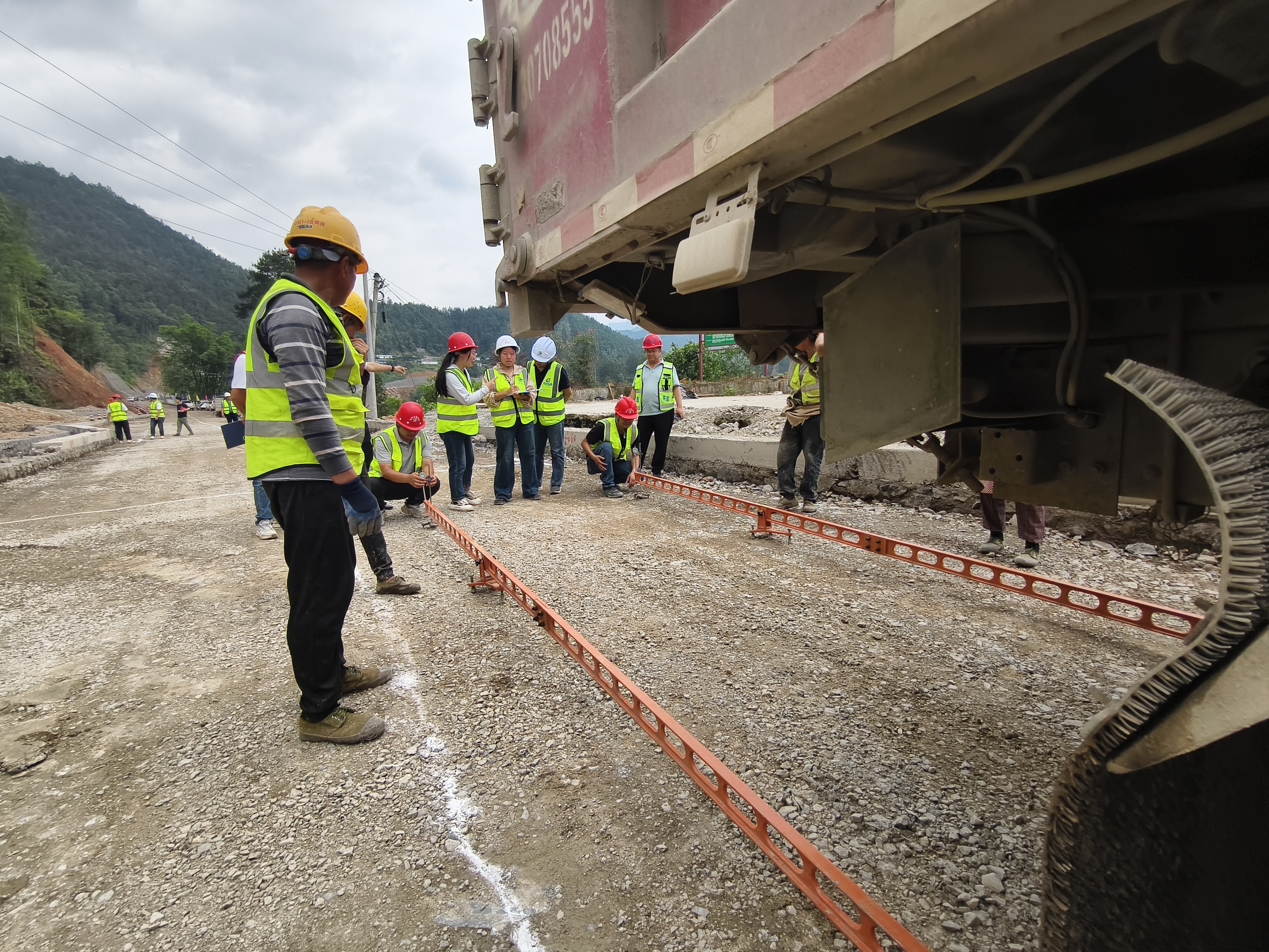 G321三都坝湾2标路线总长11.793公里,本次路基交验的路段总长1.4公里,路基宽度8.5米。验收组严格按照检验评定标准,对路基压实度、弯沉值、平整度、高程、横坡等指标进行全方位检测,交验路段各项数据均符合设计及规范要求,一次性通过交工验收。