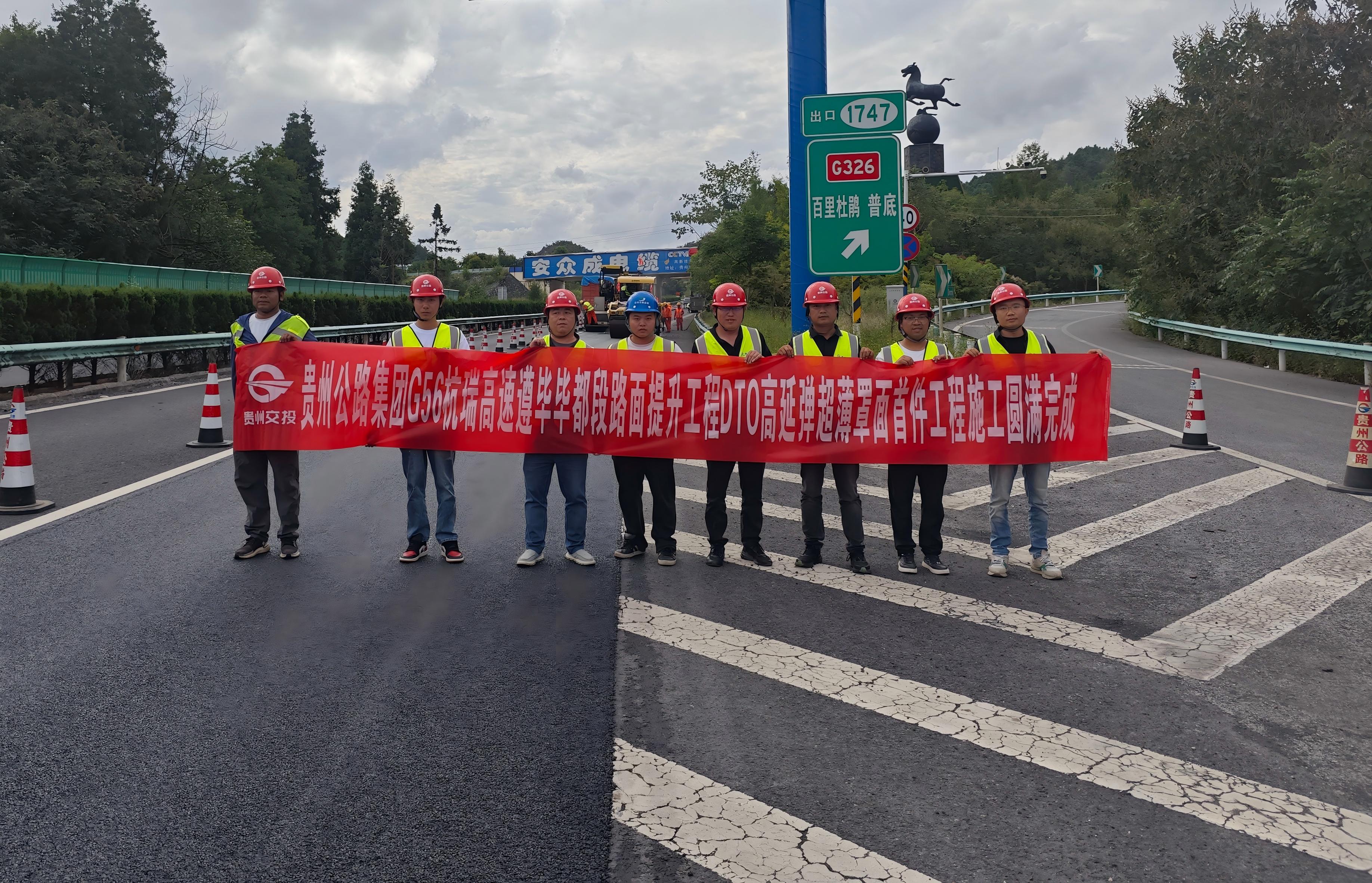近日,贵州公路集团公路养护分公司承建的G56杭瑞高速遵毕段、毕都段路面技术状况提升工程迎来重要节点——DTO高延高弹超薄罩面首件工程正式摊铺完成。