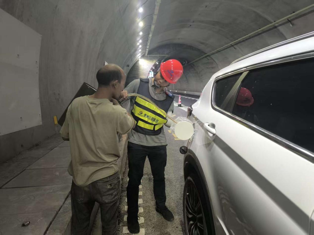 近日,纳晴高速小马厂隧道内,一辆白色越野车因燃油耗尽滞留。公路养护分公司白沙养护运维站人员接报后迅速赶往,设置安全警示区,并主动驾车送车主杨先生及家属至10公里外乡镇购买燃油。全程未收费,仅用时30分钟。