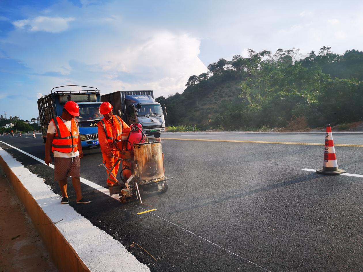 近日,由贵州公路集团第六工程公司承建的广西S205北流隆盛至平旦村段公路改建工程2标(简称:S205隆平2标)正在积极开展标识标牌、波形护栏安装及路面标线施划等交安设施施工,为月底交工验收做最后准备。
