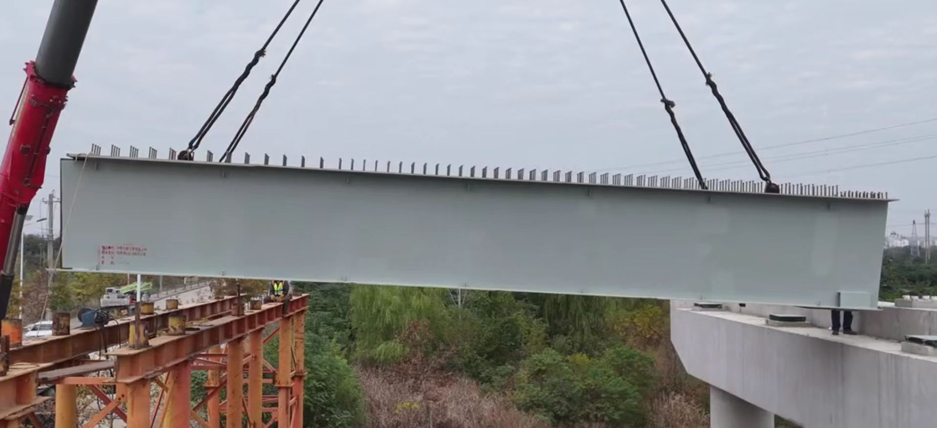 近日,由贵州公路集团第九分公司承建的湖北硚孝西2标迎来关键“双”节点,梁郭路大桥A4节段钢梁顺利完成吊装,同时双龙村大桥左幅1-3号箱梁成功架设。