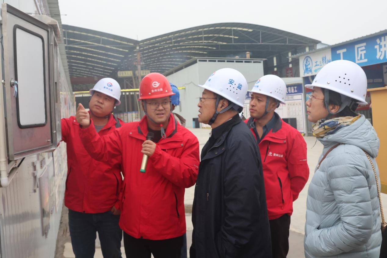 嘉宾通过管理平台实时察看了施工溯源、物资调配与进度管控等数字化场景,肯定了数字化赋能工程建设的成效。随后,在智慧梁厂现场观摩了梁片加工、混凝土浇筑、养护与张拉全流程,详细询问各环节质量控制标准。观摩团对项目的数字化应用、智慧梁厂建设及桥面施工质量给予肯定,并提出指导意见。