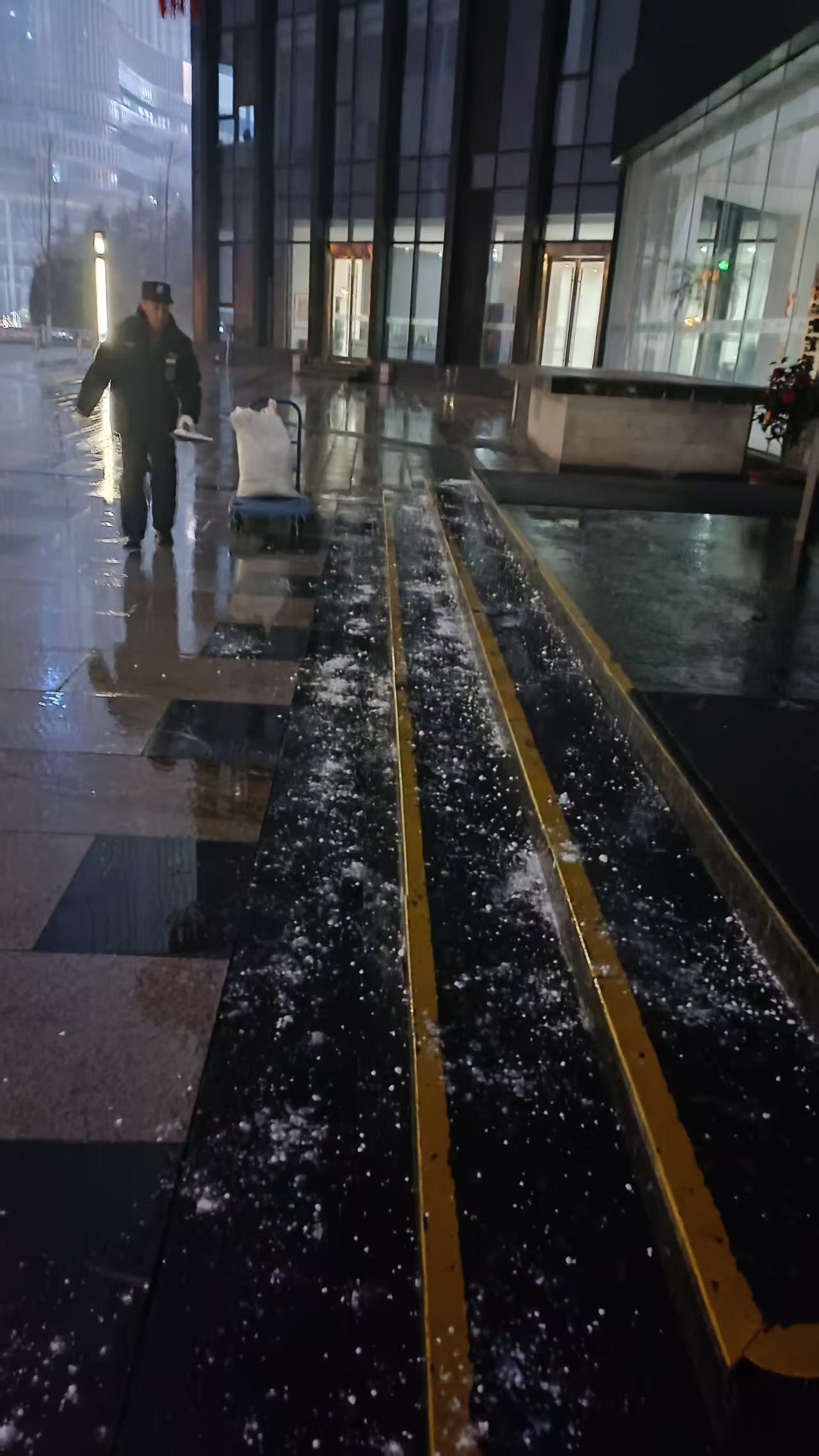 对楼梯出入处进行撒盐除凝