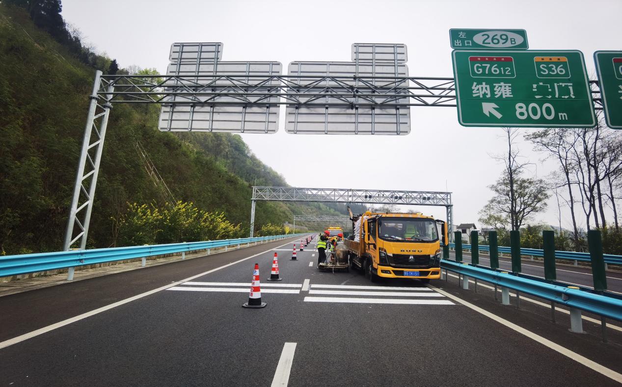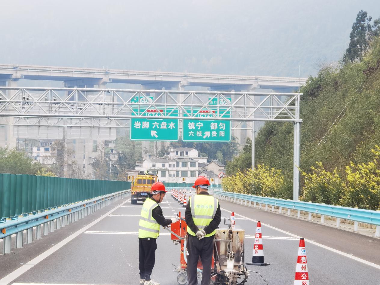 近日,贵州公路集团公路养护分公司纳晴高速养护运维站圆满完成岩脚西枢纽和岩脚东枢纽匝道振荡减速标线增设工作,以扎实举措筑牢安全防线。