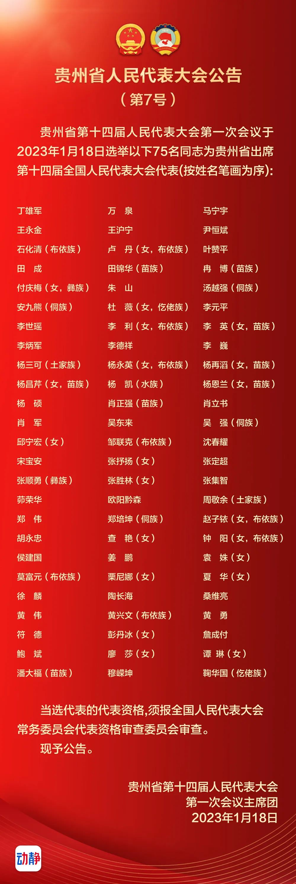 2023年1月18日,贵州省第十四届人民代表大会第一次会议选举产生贵州省出席第十四届全国人民代表大会代表,共75名。贵州公路集团副总经理、总工程师张胜林当选第十四届全国人民代表大会代表。
