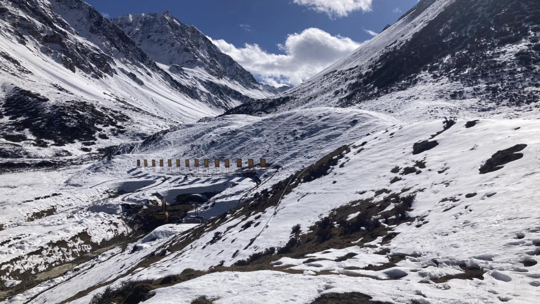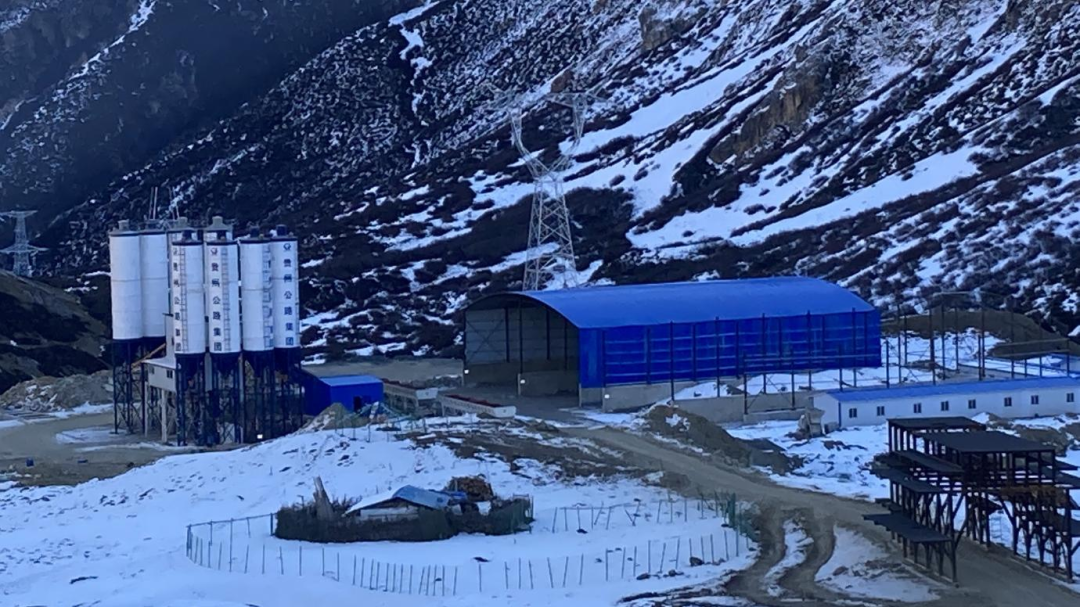 该项目位于海拔5200米~5600米的冰蚀地貌发育的高山寒冻和高山冰雪带,主要施工点果藏拉隧道受低温影响(夜间最低温度-18℃,白天最高温度2℃),洞口段喷射混凝土强度较大,再加上近期降雪频繁,砂石料生产也受到一定影响,项目建设面临极大挑战。