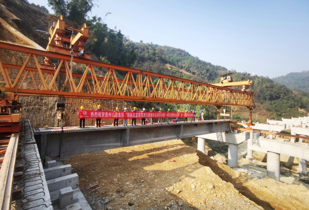 近日,由贵州公路集团第八工程有限公司承建的云南瑞丽至孟连高速公路第四总承包部第一项目部6-1合同包(简称:瑞孟项目)在格浪红河5#特大桥成功完成首片T梁架设。