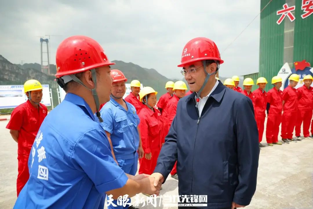徐麟在花江峡谷大桥施工现场,亲切看望慰问桥梁建设者。