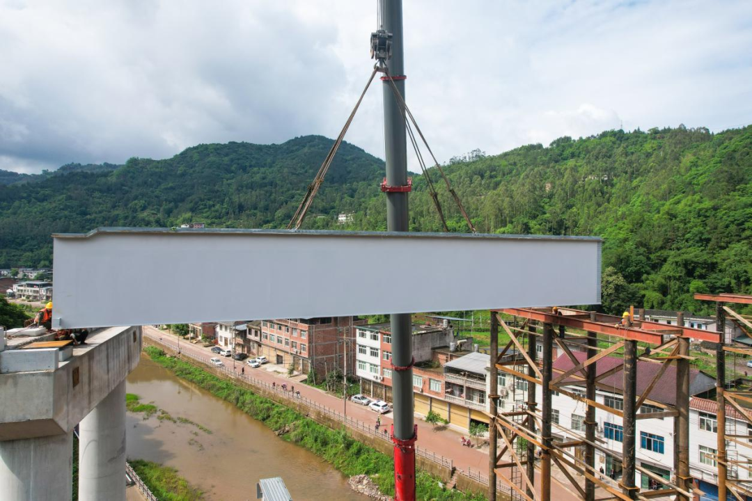 此次吊装的钢箱梁分为3节,首节梁长20.62米、宽2米、高2.82米。吊装之前,项目部编制了专项施工方案,对施工组织、交通疏导、后勤保障等工作周密部署,同时严格落实班前讲话、安全技术交底、工序卡控等措施。吊装期间,项目部党员发挥先锋模范作用,对现场移梁、运梁和架梁实施全过程严格监督把控,确保钢箱梁安全顺利架设。