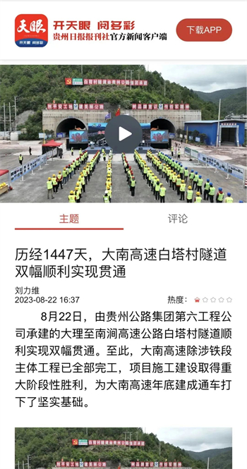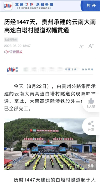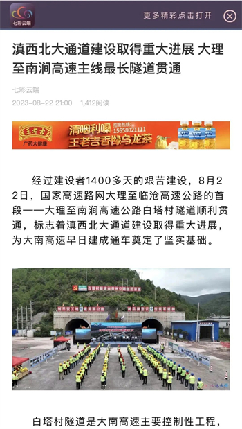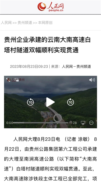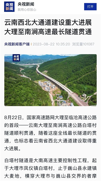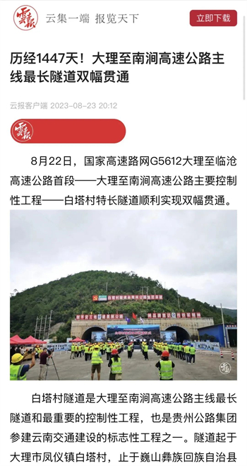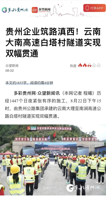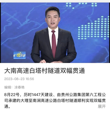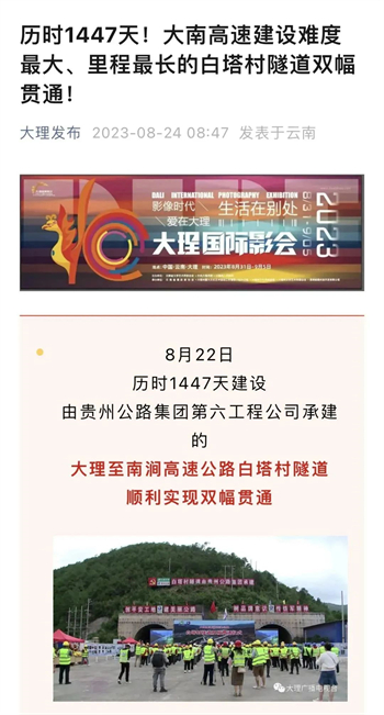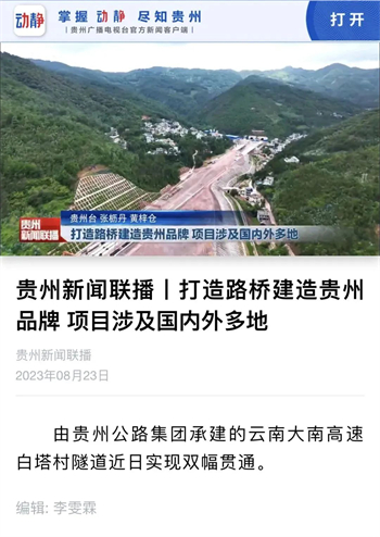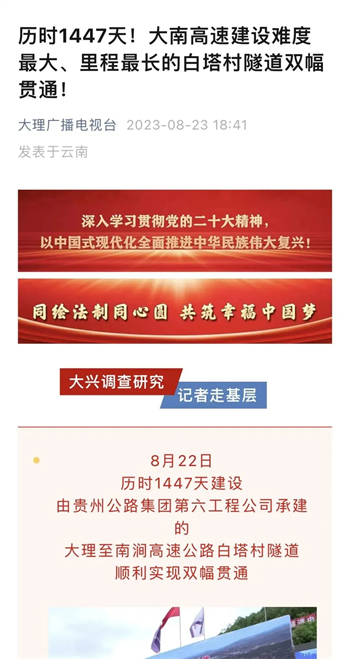 大南高速白塔村隧道顺利贯通,折射出贵州公路集团参与的不仅是国内大循环,更是面对省内公路特别是高速公路建设市场逐渐萎缩的状况下,寻找突破口,在积极融入国家战略中赢得发展。隧道贯通后,受到了央视新闻、人民网、天眼新闻、动静贵州、云南日报、大理新闻等主流媒体的高频聚焦报道。