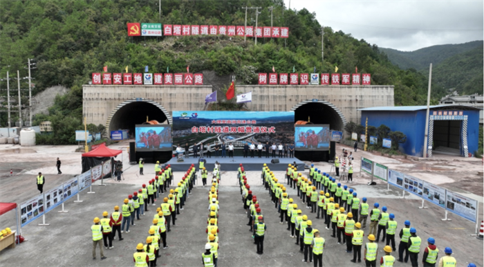 白塔村隧道双幅贯通仪式现场