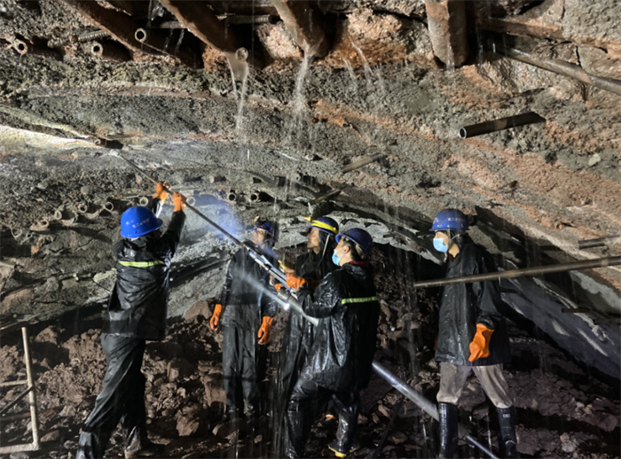 隧道内人工径向钻孔泄水作业