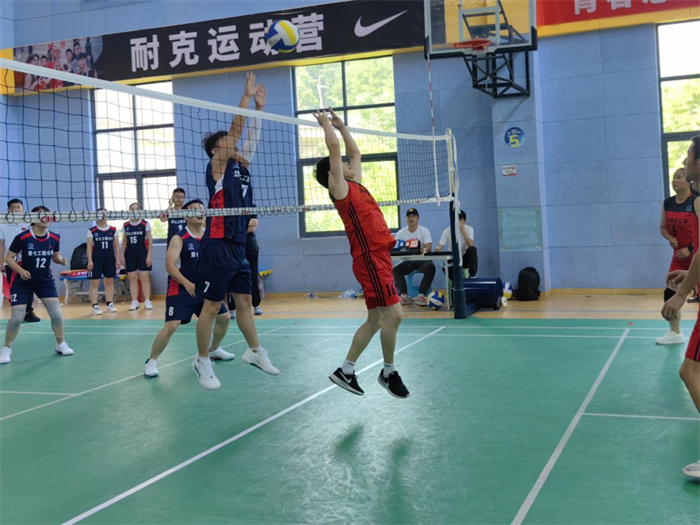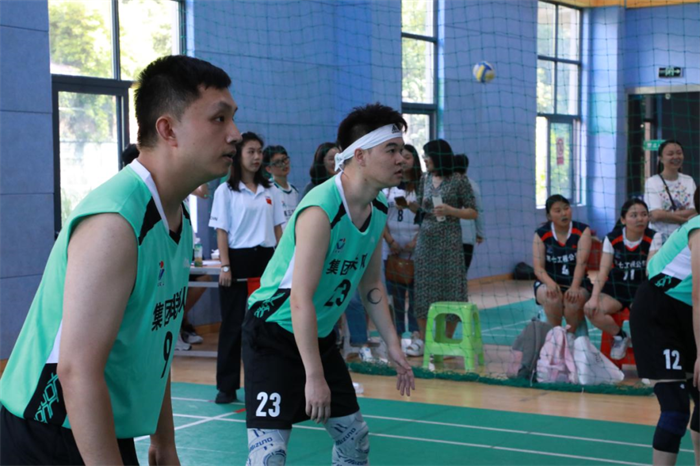 今日13时,气排球第一轮小组赛的第一场比赛,在第八工程公司与第九工程公司之间展开。