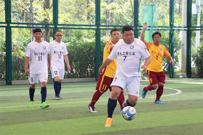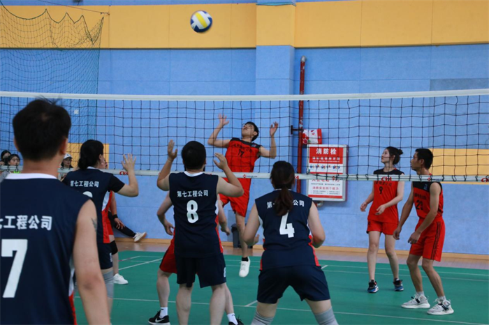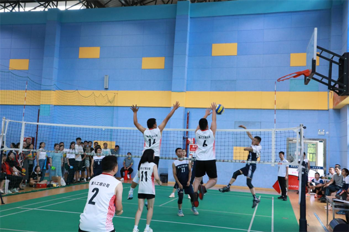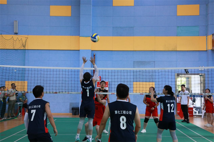 决胜局开始,双方屏息凝神,丝毫不怠。第七工程公司发挥稳定,以后排强攻、前排快攻多次得分,成功拿下第三局,以2:1赢得比赛。