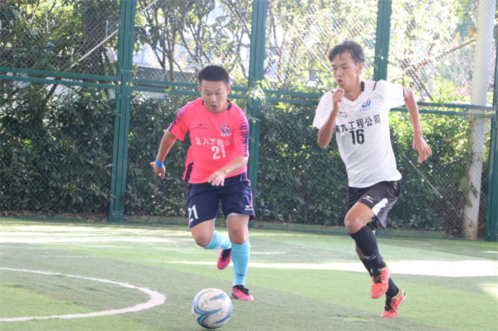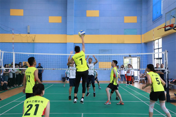 第一局开始,第九工程公司气势如虹,压制对方连得6分,一路领先到本局结束,比分定格在21:16。进入第二局后,双方球员互不相让,迅猛的发球、巧妙的拦网、精彩的扣杀,争夺激烈,比分持续紧追。在最后一个赛点球时,第九工程公司代表队眼疾手快抓住机会再获1分,率先突破21分,以21:20赢得了第二局胜利。最终,第九工程公司以2:0战胜第八工程公司!