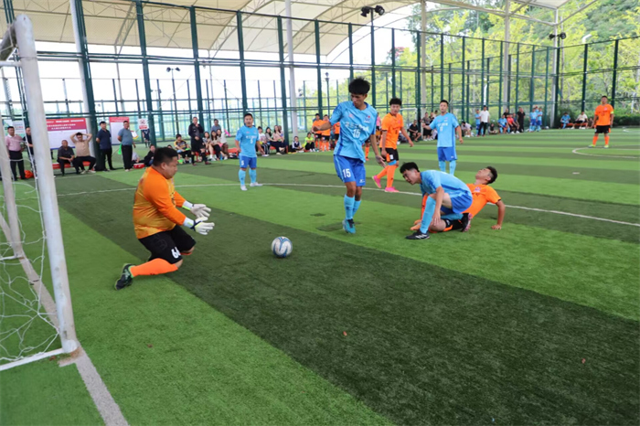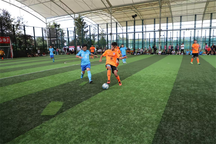 随着裁判的一声哨响, 球场上顿时沸腾起来,双方选手不甘示弱,很快展开猛烈进攻,精准的传球、激烈的快攻、精湛的脚法、完美的盘带、犀利的射门以及精彩的配合,使得比赛精彩万分,场下拉拉队欢呼声、呐喊声、助威声此起彼伏,赛场气氛在比赛中逐渐达到高潮。
