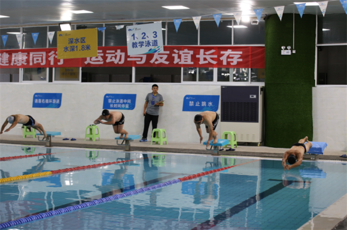 比赛设有男子蛙泳50米、100米,男子自由泳50米、100米和女子自由泳50米等5个项目,来自司属各单位的60余名职工在水中上演精彩对决。