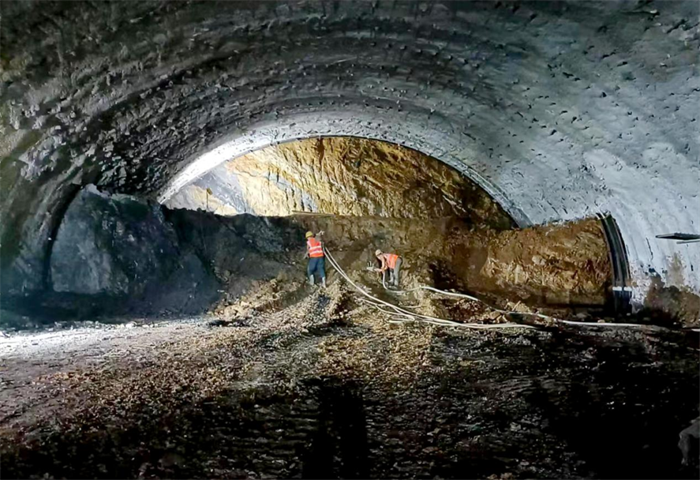 隧道施工过程中,为保证施工安全和质量,项目部大力推行信息化、机械化施工,运用隧道门禁系统、人员定位及洞内视频监控、应急喊话等成套隧道应急系统,提高隧道施工应急综合防范和安全管理能力;为保证施工进度,项目部持续优化隧道开挖方案,合理安排施工组织和工序衔接,科学调整台车配置方案及班组人员配置;为保障进度,在隧道施工中采取“两班倒”工作制,24小时不停工,确保了施工安全高效推进,隧道左洞按期出洞。