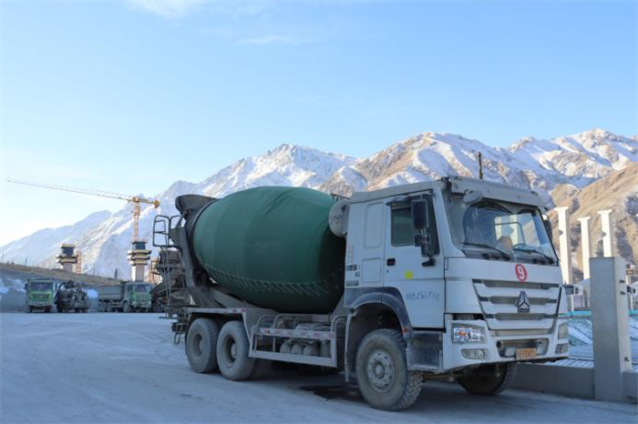 隧道外原材料的正常供应是隧道施工的基础保证,1-5号拌和站采用夹芯保温彩钢板建设,供热系统采用澳佰特空气能暖水循环系统,料仓埋设循环供暖管道,保证拌和站内部温度适宜。混凝土运输车外包裹棉布,在混凝土浇筑前,技术人员严格检查、测量混凝土温度,保障浇筑时的质量安全;外加剂、柴油、防冻液等液体材料存放在保温库房,保障物资质量安全达到冬季施工要求。