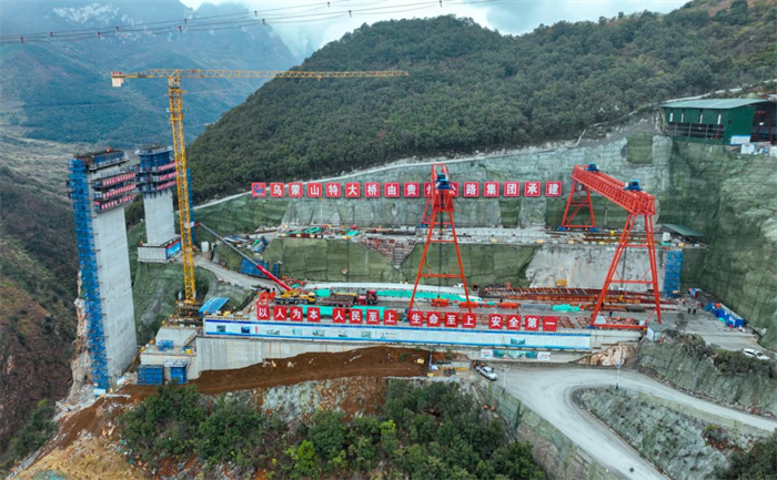 “我们严格控制红线内及红线外用地,整个临建设施的布设全部是错落有致的、依山而建,受地形条件所限,我们的场站建得比较小,包括乌蒙山特大桥的预拼场,布置在晴隆岸引桥投影下方,用的完全是红线内的用地,没有进行额外征地,节约土地资源。”项目负责人表示。